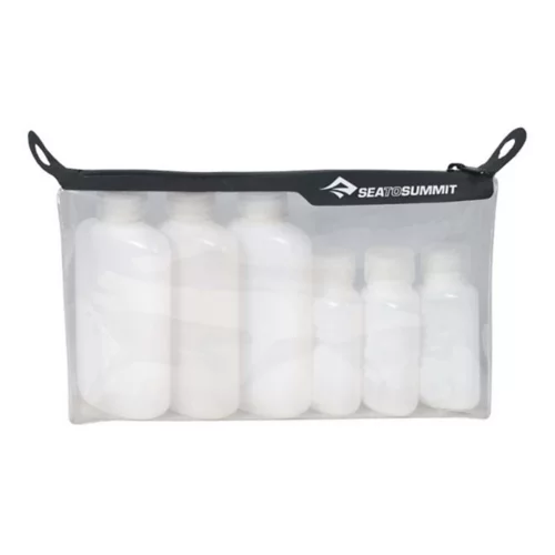 Includes three 3 fluid ounce and three 1.3 fluid ounce Sea to Summit leak-proof bottles